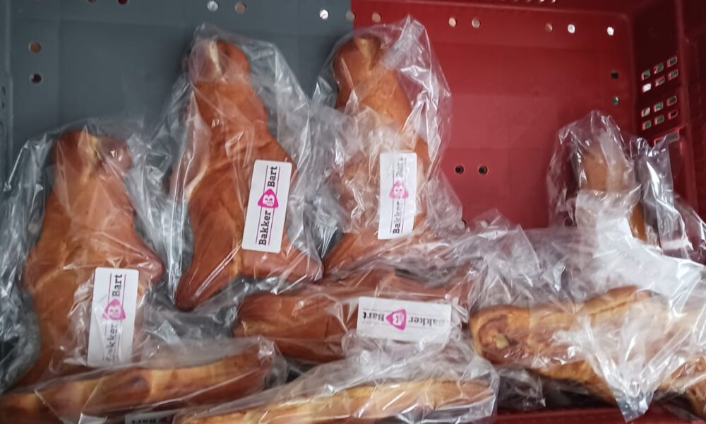Als extra verrassing deed Erik de Bie daar nog een schepje bovenop: hij schonk zelf ook broodjes, speciaal in de vorm van een paashaas.